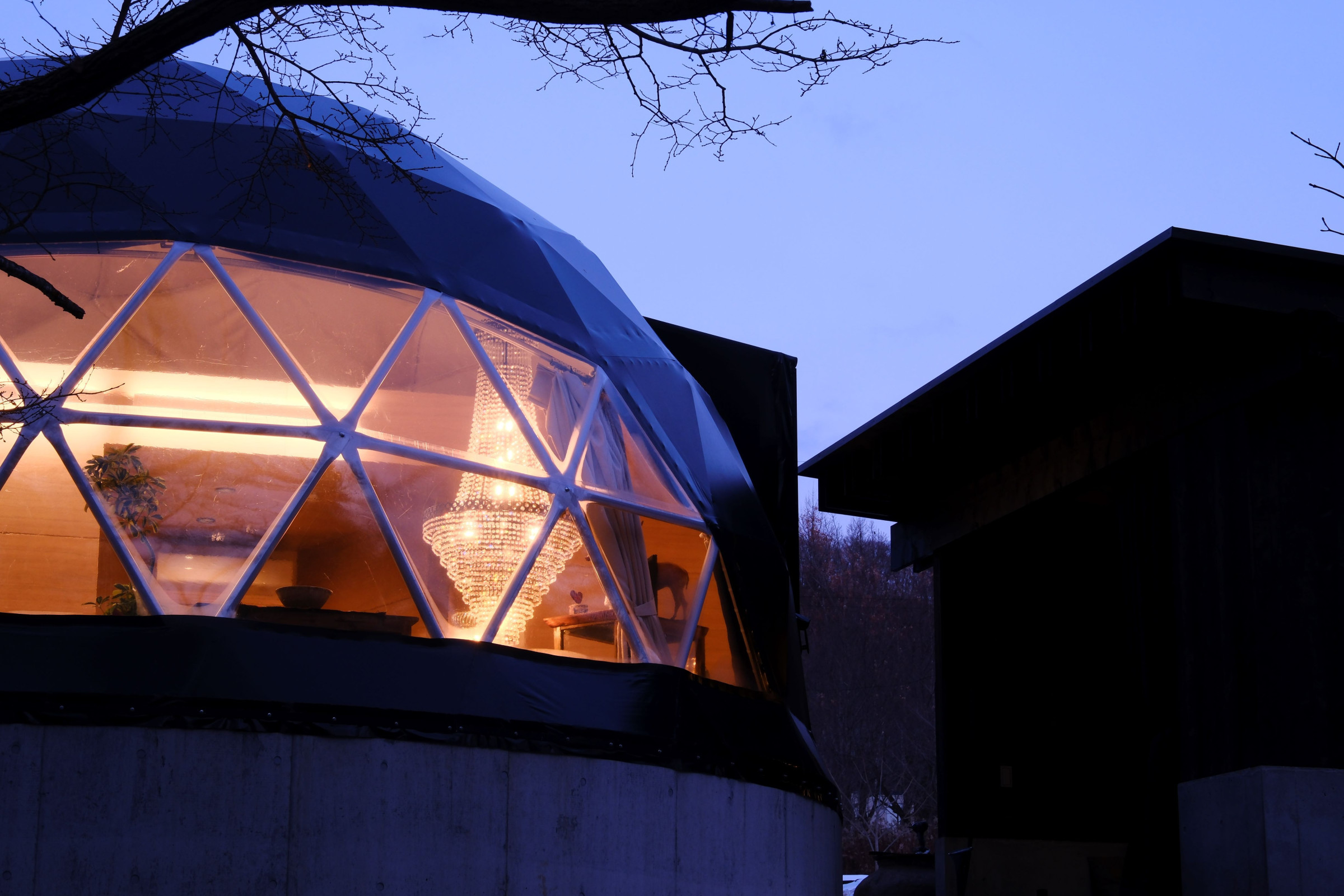 ソファーやレンガのバーベキュー台を配置した四阿、200年前のアンティークのシャンデリアや1点物の家具を配置したドーム型テント、総ヒノキ張りのプライべートサウナなど、『ここにしかない』非日常をお楽しみください。